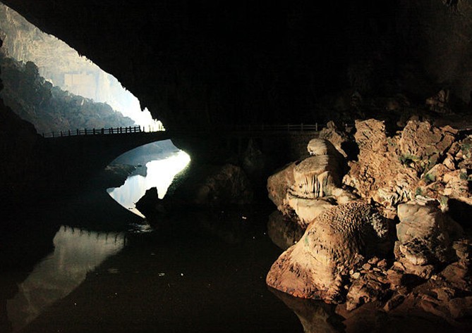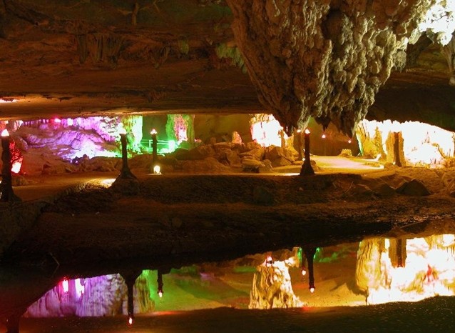 洞中曲徑通幽,石筍、石柱、石鐘、石人、石馬、石獅••••••或依或臥,或垂或立,栩栩如生。有將軍騎馬、梁祝攜手、三妹放歌、觀音坐蓮、寶鴨倒影、和尚念經(jīng)、庵中尼姑等五十六景。這些景點(diǎn)倒影在溪水之中,更是一幅幅奇麗的畫(huà)圖,使人遐想連篇。從前,洞內(nèi)建有立琴?gòu)R、文昌閣、劉三妹寺等景物。傳說(shuō)歌仙劉三姐當(dāng)年為逃避地主老財(cái)?shù)谋坪Γ诙粗芯幼《嗄辏焯煸谶@里唱歌。民間傳說(shuō)劉三姐在這里升仙,留下的化身便成了“三妹放歌”的景點(diǎn)。