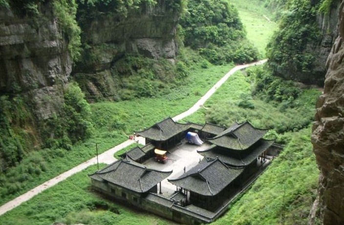 天龍橋即天坑一橋, 橋高200米,跨度300米,因其位居第一,頂天立地之勢而得名。一橋橋中有洞,洞中生洞,洞如迷宮,即壯觀又神奇。青龍橋即天坑二橋,是垂直高差最大一座天生橋。橋高350米,寬150米,跨度400米,夕陽西下,霞光萬道,忽明忽暗,似一條真龍直上青天,故名青龍橋。黑龍橋即天坑三橋,橋孔深黑暗,橋洞頂部巖石如一條黑龍藏身于此,令人膽戰(zhàn)心驚。黑龍橋景色以其流態(tài)各異的“三迭泉”、“一線泉”、“珍珠泉”、“霧泉”四眼寶泉而獨具特色。