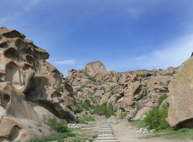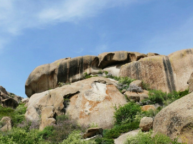 從博樂市北行偏東行38公里,就到了怪石峪。 怪石峪為一峽谷,然谷內(nèi)無懸崖峭壁,也無峨峰刺天。整個(gè)山體,如人工用億萬巨石所砌。所砌之石,皆呈圓角,且有竅孔,石面光滑,無嶙峋之跡,令人稱怪,故稱“怪石峪”。當(dāng)?shù)毓_克族同胞稱怪石峪為“闊依塔什”,意思是“遍地像羊一樣的石頭”。因?yàn)檫@些光滑的巨石,遠(yuǎn)遠(yuǎn)望去,如同羊群擠在山坡。