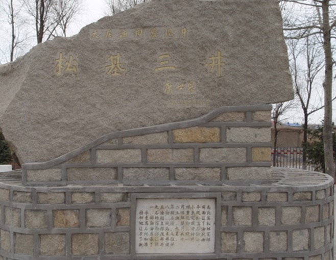 1958年9月,松遼石油勘探局最早提出在肇州縣“大同鎮(zhèn)電法隆起”上安置“松基三井”的井位。1959年9月26日下午4時,松基三井噴出了工業(yè)油流,從此中國石油工業(yè)歷史上掀開了新的一頁。現(xiàn)在的松基三井紀念碑位于第五采油廠,是為紀念大慶油田發(fā)現(xiàn)30周年,由中國石油天然氣總公司于1989年9月26日重新建成的。石油工業(yè)老領導、原中顧委常委康世恩同志題寫碑文:“大慶油田發(fā)現(xiàn)井——松基三井”。