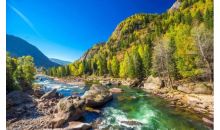 一進(jìn)入9月,喀納斯便進(jìn)入了純金的時(shí)節(jié)。天高云淡,藍(lán)天如洗,層林盡染,滿目流金,深綠的山坡上透出一片片黃枝紅葉相間、青山白雪相連的色塊,湖畔的白樺、紅松、冷杉等樹木會(huì)以金黃、橙紅、黛綠等交叉的色彩,烘托著山頂耀眼的雪色,投映在翡翠石般的喀納斯湖上,光彩奪目,令人沉醉。此時(shí)也是攝影的最佳時(shí)節(jié)。