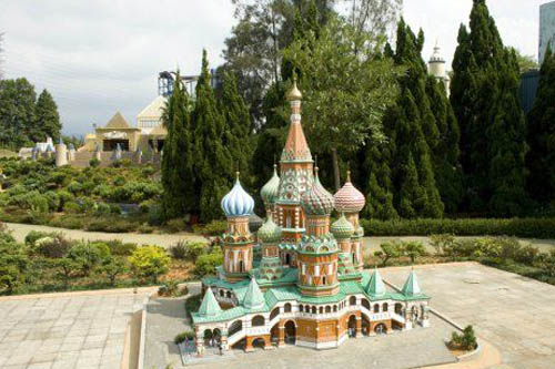 歐洲迷你景觀區(qū)包括歐洲許多代表性建筑,例如“古典時期”的希臘神殿、“羅馬式”的伏姆斯大教堂、圣法蘭西斯教堂的“哥德式建筑”及結(jié)合了回教拜占庭風格、哥德式尖拱、仿羅馬式拱廊的圣巴西爾大教堂。