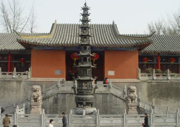 梁武帝時又在臺上建有鐵佛寺。唐大歷年間又重修擴建,定名明教院,至明代改為明教寺。后毀于戰(zhàn)火。明教寺,聳立臺上,雄偉壯觀,乃清光緒十一年太平天國遺老袁宏謨云游募化,按原樣重建而得。明教寺現(xiàn)為全國重點寺廟,由佛殿、藏經閣、西廂院三部分組成。殿分正殿和后殿,有佛像三十多尊。大雄寶殿飛檐翹角,風鈴叮鐺,殿脊高聳一巨大錫葫蘆,銀光閃耀,直刺云天,顯示了我國佛教寺院威嚴莊重得建筑特色。寺內鐘鼓齊鳴,梵音繚繞,充滿了神奇得宗教色彩。