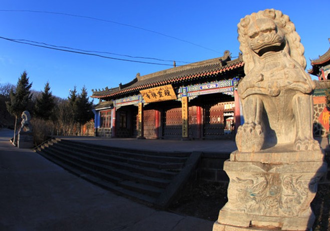 藥泉山鐘靈禪寺坐落在五大連池風(fēng)景名勝區(qū)老期火山藥泉山的火山口中平曠之處,距火口垣尚有十余米的高程,它與火山堰塞湖和新老期火山相映生輝,構(gòu)成了獨特的人文景觀,在火山口里建寺廟在世界上是唯一的,所以鐘靈禪寺又號稱火口第一寺。登藥泉山晉鐘靈寺,會看見許多造型各異、雄偉巍峨、金碧輝煌的殿堂式建筑,殿堂內(nèi)又有許多妙相莊嚴(yán)、氣勢雄偉、技法精湛的各種塑像,有色彩艷麗,畫技高超的壁畫,殿堂周圍有郁郁蔥蔥的蒼松翠柏,有裊裊升起的香煙,有喃喃回蕩的頌經(jīng)聲……,身處其間,能體會到千百年來積淀而成的佛教文化在瞬間釋放。