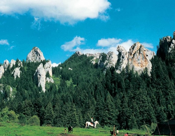 則岔石林全長10公里,是一處由地殼變化上升造成的硅灰?guī)r石景觀,經(jīng)過長年累月的風(fēng)雨剝蝕和流水的侵蝕,形成各異的奇峰怪石,版權(quán)所有山東聊城聊之旅國際旅行社有限公司,轉(zhuǎn)載必究!巍然屹立,遠(yuǎn)遠(yuǎn)望去,如一片巖石森林,有猴子窺月、玉女老嫗、將軍峰、和尚石等星羅棋布的奇峰怪石。壁立千仞的石峰間有長近百米的“石門一線天”,寬僅容一馱畜經(jīng)過,潺潺流水穿石門而過,石門內(nèi)修有百米的木棧道,供游客出入,有一夫當(dāng)關(guān),萬夫莫開之險,是進(jìn)入石林的必經(jīng)之路。壁立千仞、刀壁斧削般的則岔石林,以其鬼斧神工的奇特造型和森林茂密的秀麗景色,具有峨嵋之秀、華山之險、泰山之雄、黃山之奇的特點(diǎn),可與昆明石林媲美,與四川九寨爭秀。這里是造山運(yùn)動地塊抬升后,經(jīng)流水侵蝕、風(fēng)雨剝飾而形成的大面積硅灰?guī)r石林在則岔石林的峰頂及巖洞中,有大量古海洋生物化石。在藏族人民的心中,則岔石林的每一座山峰,都與藏族人民的英雄之神格薩爾王的故事有著密切聯(lián)系。洮河南岸溯則岔石林向南,山青水綠,奇花異草飄散幽香,珍禽異獸出沒林間。遠(yuǎn)遠(yuǎn)望見聳立的石壁組成天然屏障,雄偉奇險。行至石林腳下,則見一條石峽訇然裂開,則岔河從中奔騰而出。相傳此“一線天”為藏族史詩中的英雄格薩爾一劍劈開,成為進(jìn)入石林的唯一通道。如今,石壁上還留有馬蹄印痕,相傳為格薩爾坐騎所為。 則岔石林景區(qū)共有三道石門,“一線天”為頭道石門,越往里則越險,風(fēng)景也越奇,至目前尚有人跡未到之處。則岔石林擁有豐富的自然景觀和動植物資源,1998年8月,則岔—尕海被國務(wù)院列為國家級自然保護(hù)區(qū)。