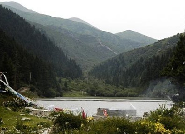 位于王夏公路約10公里處,距縣城17公里,是一潭構(gòu)造成因的斷崖地形之湖盆。湖面海拔三千米左右,呈狹長(zhǎng)形,湖濱周?chē)质揍荆八伤某觥:媳遍L(zhǎng)約350米,東西寬約百米,面積約有五十余畝。湖濱地形開(kāi)闊,外圍前塬是平壩草甸,三面環(huán)山,山上森林密布,林中百鳥(niǎo)群集,湖中魚(yú)類(lèi)繁生,湖畔野草叢生,百花盛開(kāi),湖光山色,令人陶醉。人們形容達(dá)宗湖象一顆鑲嵌在密林幽谷里的明珠,在高山峽谷之巔放射著耀眼的光芒!