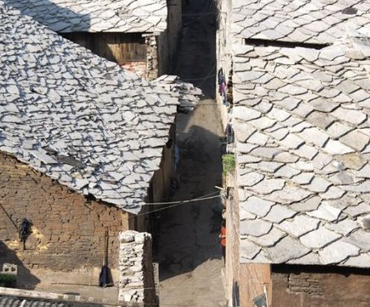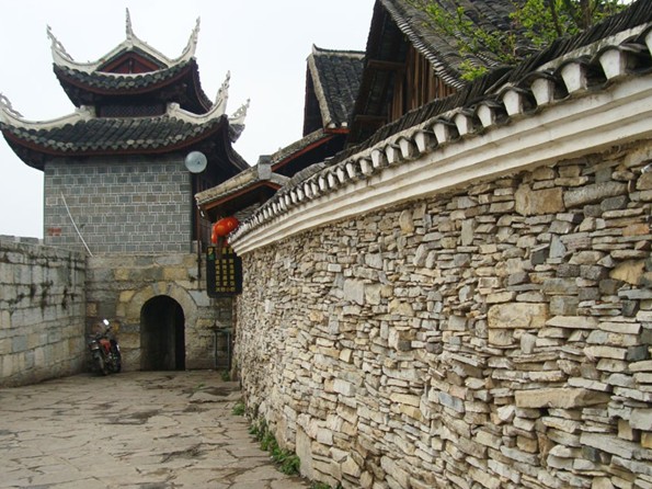 天龍屯堡古鎮(zhèn)地處西進(jìn)云南的咽喉之地,在元代這里就是有名的順元古驛道,天龍屯堡古鎮(zhèn)最早是順元古驛道上的一個(gè)驛站,版權(quán)所有山東聊城聊之旅國(guó)際旅行社有限公司,轉(zhuǎn)載必究!名叫飯籠驛。由于軍事地理位置重要,從明代開(kāi)始就在這里及周邊大量屯兵,時(shí)至今日依然是駐軍重地。清朝康熙年間,云貴總督范承勛奉旨實(shí)行“改土歸流”后,屯堡人由軍戶轉(zhuǎn)變?yōu)槠胀ò傩铡L忑埻捅す沛?zhèn)更名為“飯籠鋪”,由于地理位置的重要性,這里依然是清廷的驛站和屯兵重地。本世紀(jì)初,天龍的幾位有名鄉(xiāng)儒感覺(jué)飯籠鋪的“飯籠”二字不雅,經(jīng)提議,取天臺(tái)山的“天”,龍眼山的“龍”二字為村寨之名,這就是天龍屯堡鎮(zhèn)“天龍”二字的由來(lái)。歷代的屯兵都在這塊大地上留下了歷史的遺跡:明朝征南軍隊(duì)在天臺(tái)山背后的兵器加工場(chǎng)所(本地人呼之為“打鐵坑”);煙堆山的明代烽火臺(tái)殘壘;圍繞天臺(tái)山的古城墻;清“威同之亂時(shí)”修建有垛口、炮臺(tái)、瞭望哨的龍眼山屯,至今殘?jiān)写妫辉谔忑埻捅す沛?zhèn)中,則是巷道縱橫交錯(cuò),遍布于巷道中的深邃搶眼,石拱門一夫當(dāng)關(guān),萬(wàn)夫莫開(kāi)的軍事功能,這一切無(wú)不顯示出戰(zhàn)爭(zhēng)的遺跡,屯堡人武備的思想。明代飯籠驛最初的建設(shè)者是如今天龍“張、陳、沈、鄭”四大姓的入黔始祖?zhèn)儯貏e是身為“通政大夫”的陳典(注:通政大夫是主管郵政的官吏),在天龍?jiān)O(shè)驛站,建塘房(塘房是驛站供來(lái)往人員住宿的地方),其他三大姓入黔始祖則建“屯堡”屯扎軍隊(duì)。