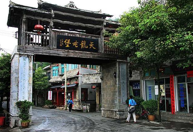 天龍屯堡古鎮(zhèn)位于貴州省西部平壩縣,喀斯特地貌大山深處,有天臺(tái)山、龍眼山兩山脈,距貴陽(yáng)市72公里。這里地處西進(jìn)云南的咽喉之地,在元代就是歷史上有名的順元古驛道上的重要驛站,名“飯籠驛”。明初時(shí),朱元璋調(diào)北鎮(zhèn)南,在這里大量屯兵,兵來(lái)自江浙漢族,本世紀(jì)初被當(dāng)?shù)厝迨扛拿麨?ldquo;天龍屯堡”。