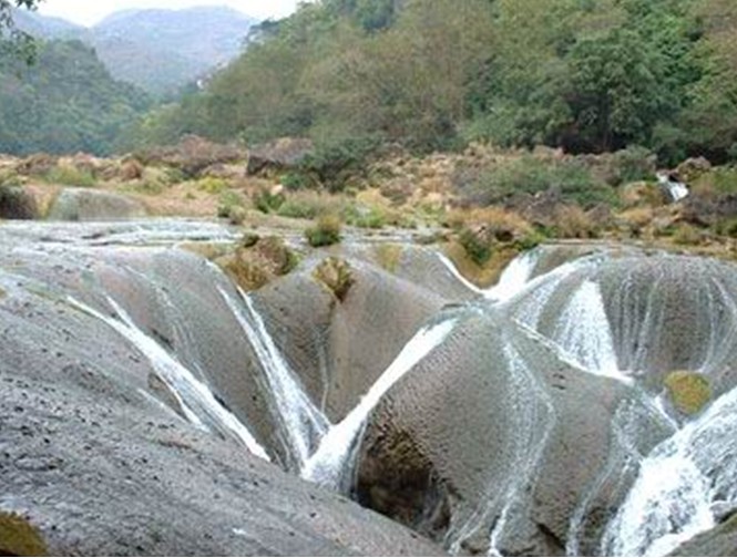 銀練墜瀑布在天星橋景區(qū)內(nèi),離黃果樹(shù)瀑布只有7公里。天星橋是一個(gè)巖溶地貌公園,這里有很多小山,路是繞湖而過(guò)的,攀上一座石峰,才發(fā)現(xiàn)到對(duì)面的山峰去必然過(guò)一座形狀獨(dú)特的橋,它是天然形成的石橋,中間插著一塊石頭如流星墜落時(shí)碰巧構(gòu)成,天星橋正是得名于此。過(guò)了橋,就到了天星洞,版權(quán)所有山東聊城聊之旅國(guó)際旅行社有限公司,轉(zhuǎn)載必究!洞里特別令人叫絕的是一片石筍群,酷似傳說(shuō)中的八仙,邊上又有一泓淺水,故稱(chēng)“八仙過(guò)海”。出洞之后,眼前是冒水潭,亂石叢由于高低不平,流水便有了瀑布的形態(tài),眾多小瀑布又構(gòu)成壯麗的氣勢(shì)。緊接著出現(xiàn)的就是銀練墜瀑布了,幾塊巨巖猶如自然垂下的肩膀,讓流水輕盈地漫過(guò),緩緩地匯聚在深潭里。巖石表面就像粗糙的皮膚,流水在上面形成了美麗的銀色顆粒,因此整個(gè)景觀就仿佛銀練紛垂,其柔美風(fēng)韻讓人的心一下子軟了幾分。銀練墜瀑布位于貴州安順天星橋景區(qū)內(nèi),離黃果樹(shù)瀑布7公里,是景區(qū)內(nèi)具有獨(dú)特形態(tài)的瀑布景觀。不同于黃果樹(shù)瀑布的雄偉壯觀,銀練墜瀑布以柔美圓潤(rùn)見(jiàn)長(zhǎng)。它總高40余米,由許多小瀑布匯合而成,其獨(dú)有的幾塊天然巨石猶如緩緩下垂的肩膀,在底部形成一個(gè)巨大的凹槽。上游的小瀑布匯合到此后,在地心引力的作用下,沿著巨石粗糙的表面輕盈地漫過(guò),均勻鋪開(kāi),然后緩緩地匯聚在底部深潭里,象千千萬(wàn)萬(wàn)條大大小小的銀鏈輕輕嚷嚷地墜入深潭,永遠(yuǎn)地沒(méi)完沒(méi)了。尤其在陽(yáng)光燦爛的日子,水流更仿佛披上一層銀紗,晶瑩剔透,皎潔柔美,讓人有種誤墜銀河的錯(cuò)覺(jué),不舍離開(kāi)。在黃果樹(shù)瀑布群中,銀練墜瀑布以其千絲萬(wàn)縷的情態(tài)和如泣如訴的瀑聲獨(dú)樹(shù)一幟,是黃果樹(shù)旅游絕對(duì)不可錯(cuò)過(guò)的美景。它既不是以高取勝,也不是以闊或大驚人,而是以它那千絲萬(wàn)縷的情態(tài)和如泣如訴的瀑聲,讓人看見(jiàn)就不想離開(kāi)這個(gè)瀑布只有十余米高,上面成漏斗形,底部是槽狀溶潭在潭沿面上隆起的石包,像一張張下覆的蓮葉,交錯(cuò)搭連,河水在每一張葉面上均勻鋪開(kāi),縱情漫流,像千千萬(wàn)萬(wàn)條大大小小的銀鏈,輕音嚷嚷地緩緩墜入溶潭,永遠(yuǎn)沒(méi)完沒(méi)了。