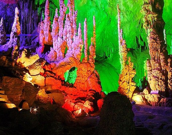 黃山歸來不看岳, 織金洞外無洞天, 瑯嫘勝地瑤池景, 如信天宮在人間。貴州屬于喀斯特巖溶地質(zhì)地貌,故形成了山中有洞洞中有景的地理征,出現(xiàn)了石林、石溝、石牙、峰林、漏斗、天生橋、巖溶湖、瀑布等地表巖溶形態(tài),又有溶洞、地下河、地下湖、鐘乳石、石柱、石筍、石幔等地下巖溶形態(tài)。從而組成了發(fā)育完整、類型多樣、造形奇特、宏偉瑰麗的巖溶洞穴系統(tǒng)。畢節(jié)織金洞便是這之中的姣姣者。織金洞又名打雞洞,位于織金縣境內(nèi)。它由11個(gè)景區(qū),47個(gè)廳堂,150多個(gè)景點(diǎn)組成一個(gè)天然洞穴美景。洞口是花園式的迎賓廳,千奇百異的花草點(diǎn)綴著"雙獅"、"玉蟾"、"飛來石"等石景,迎接著來自遠(yuǎn)方的客人;正午時(shí)分,烈日當(dāng)空,萬道金光從洞頂灑向織金洞,在水蒸氣的繚繞彌漫中彩環(huán)重現(xiàn),陽光下的小水滴恰如一串串晶瑩而透明的珍珠散落人間,其境美不勝收,其意可幻可切。琳瑯滿目的鐘乳石,大的數(shù)十丈,小的如手掌,織金洞的銀雨樹,是一種罕見的花狀透明結(jié)晶體,從白玉似的托盤中沖天而起達(dá)17米,亭亭玉立、珠光寶氣;水晶宮又名雪香宮,宮內(nèi)的鐘乳石表面皚皚石雪,頂頭冰柱高掛,地上石筍密布,幌如東海龍宮。