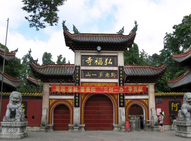 弘福寺位于貴陽市黔靈山群峰中心,距城約1。5公里,是十方叢林,為貴州首剎,向有“黔南第一山”之稱。弘福寺于1672年(清康熙11年)由赤松和尚開創(chuàng),“弘福”二字乃“弘佛大愿,救人救世;福我眾生,善始善終之意。赤松是為本寺開山始祖,佛法為臨濟一系之正宗,乃禪門五宗之一。
