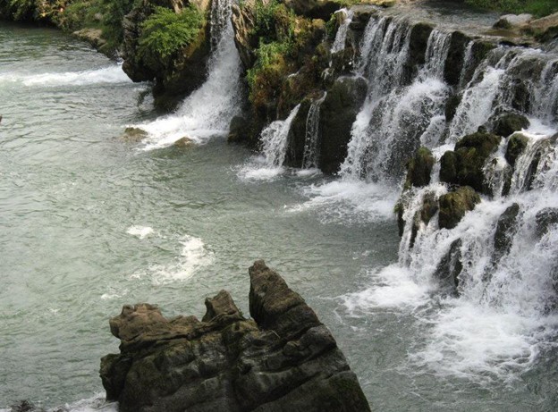 中國(guó)最大瀑布群,這里石峰成林,壯闊雄偉;峽谷成河,奇險(xiǎn)幽深。它是國(guó)家最近公布的重點(diǎn)風(fēng)景名勝區(qū)之一。馬嶺河發(fā)源于烏蒙山脈,流入黔、桂交界的南盤江,長(zhǎng)達(dá)100多公里。它的地貌結(jié)構(gòu)與一般峽谷不同,實(shí)際上是一條地縫。有人說:這是地球最美麗的傷疤。沿著石階下坡,奇險(xiǎn)幽深的峽谷就逶迤展現(xiàn)在眼前。走在這條深200-400米的地縫底部,只見尖峭的峰巒赫然屏列,瀑布異彩紛呈且氣勢(shì)磅礴,有一種幽深的神秘氣氛彌漫在山谷間。