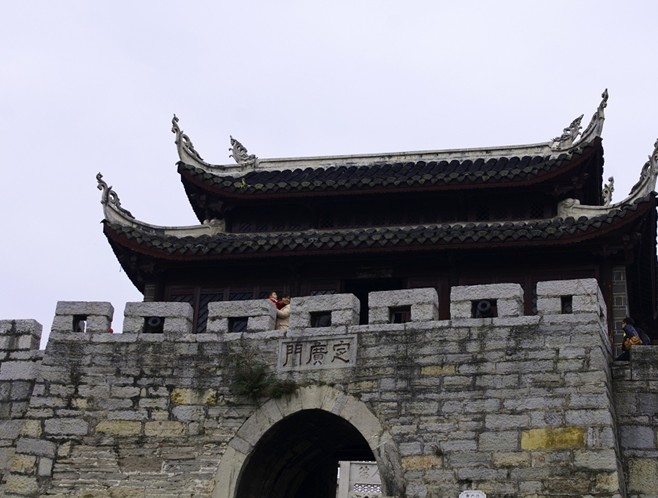 青巖鎮(zhèn),是明清時期的一座古鎮(zhèn),距貴陽約60華里。它地近苗鄉(xiāng),以前曾是軍事重鎮(zhèn),用以鎮(zhèn)壓苗民起義;它又曾是遠到川、湘、滇、桂的通衢,往來的商賈都要由此經(jīng)過。于是,軍事和經(jīng)濟的雙重需要,成就了這座古鎮(zhèn)。如今,它早已失去了軍事價值,所謂城墻也不過是一段斷壁殘垣而已。然而,看著那起伏的山勢,仍能想像出它當年那蜿蜒的身姿。城樓后面,當街而立的是一座石牌坊,是光緒皇帝賜給當?shù)匾晃粻钤模嘟褚延幸话俣嗄甑臍v史了。但它還不算是“古董”,因為沿街的民居有的還是明代建筑。