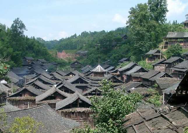 岜沙隸屬貴州省從江縣,距離從江縣城7.5公里、位于山頂和國道321老線公路邊的一個苗寨。岜沙部落僅2000余人,分住在月亮山麓茫然林海中的5個寨子里。走進(jìn)岜沙,隨處可見茂密的森林。他們以稻作為主,狩獵為伴。這里箐黑林密,鳥道蠶叢,具有很強(qiáng)的隱蔽性,千百年來極少有外人進(jìn)入。岜沙村不大,村寨建于山粱坳口及面向都柳江一側(cè)的半坡上。