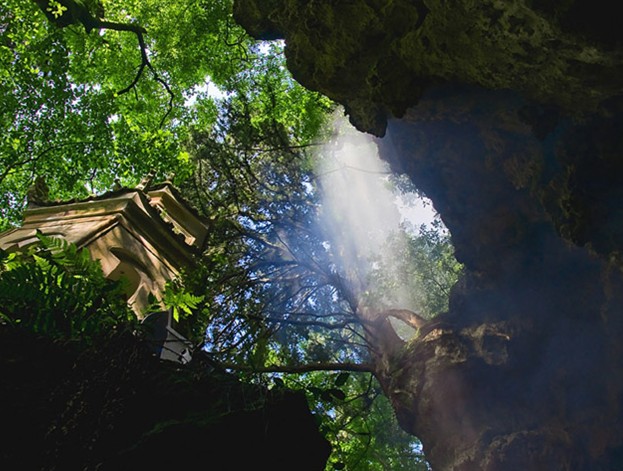 原廟傳為苗民草創(chuàng),每年農歷“四月八”,數萬苗胞聚集于此,跳笙、對歌、賽馬、斗雀,狂歡三晝夜。明王守仁勝贊之曰:“天下山水之奇聚于黔中,黔中山水之奇聚于此崖。”飛云崖似洞非洞,內甚寬敞。頂上崖檐覆出,石乳倒垂。浮者若飛霞,亙者若虹霓,豁然樓殿門闕,懸若銅鼓編磐,并有獅象蛟龍、蓮行阡陌、蜂房水渦之屬。其下澄潭邃谷,幽深無底。巖半立大士像。