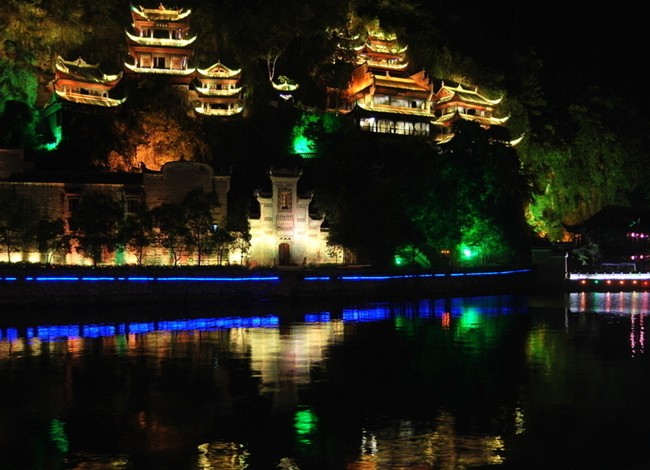 青龍洞古建筑群坐落在中國歷史文化名城——鎮(zhèn)遠城東的中和山上。這里山勢挺拔,峭壁懸崖。巨巖、洞穴和為一體。道、儒、佛三種宗教的寺廟群生就山腰。它背靠青山,面臨綠水,貼壁臨空,五步一樓,十步一閣,翹翼飛檐、雕梁畫棟。這些古建筑依山因地,分別采用了“吊”、“借”、“附”、“嵌”、“筑”等多種工藝,硬是在一段懸崖上筑出中元洞、紫陽洞、青龍洞、萬壽宮等一片閣樓洞天。它氣勢雄偉、構(gòu)思大膽、布局精巧。于1988年被列為全國重點文物保護單位。青龍洞建于明代中葉,至今已有近500年的歷史,曾幾度毀于兵、火,幾度修復,古建筑群經(jīng)歷代修建始成現(xiàn)代規(guī)模,位于城東中河山,占地21000平方米,有青龍洞、紫禪書院、中禪院、萬壽宮、祝圣橋和香爐巖6部分共36座單體建筑組成,集儒、道、佛、會館、橋梁及繹道建筑文化于一身。版權(quán)所有山東聊城聊之旅國際旅行社有限公司,轉(zhuǎn)載必究!整群建筑靠山臨江,依崖傍洞貼壁凌空、勾心斗角,錯落有致。那飛巖翹角、貼壁凌空、紅墻青瓦的殿閣樓臺,氣勢宏偉。造型獨特的建筑物與懸崖、古木、藤蘿、巖畔、溶洞天然合成,融為一體,真是巧奪天工。既有臨江遠眺的吊腳樓,也有恬靜幽邃的寺院禪臺,有朗朗書聲的學子院,更有鑼鼓喧天的戲臺,集天下山水樓閣薈萃為一方。整個建筑群重重疊疊參差不齊,縱橫有致,沿庭院小徑漫步,登斯樓而極目,如臨海市蜃樓,蓬萊仙島。為江南漢地建筑與西南少數(shù)民族山地建筑文化相結(jié)合的絕妙典范。有“西南懸空寺”之稱,是貴州省規(guī)模最大的古建筑群。1988年經(jīng)國務(wù)院批準被列為國家級重點文物保護單位。史載,距今600多年的明洪武年間,此地便已形成與現(xiàn)存建筑群相當?shù)囊?guī)模,“明郡守黃希英建,工部郎中趙之緒購藏經(jīng),構(gòu)層樓以貯之”。清嘉靖年間這里不僅增加了大量寺廟,而且有了宮室和書院建筑,后多有改擴建。雍乾時又有了萬壽宮等商業(yè)性會館建筑及戲樓。光緒四年,又增建了祝圣橋上的狀元樓(亦稱魁星樓)。1956—1963年間,省州政府撥出專款,組織專人對青龍洞建筑群兩度較大維修,后又對中元洞一組修復。1983年起,省政府再次撥巨款對青龍洞、紫陽洞、萬壽宮、香爐巖等各組古建筑全面搶救和修復,青龍洞古建筑群得以恢復原貌。此建筑名勝有如群星 燦爛,通常以青龍洞概言之,成了歷代游人流連忘返之地,文人騷客詠嘆之物。清人陳夔龍詩云: