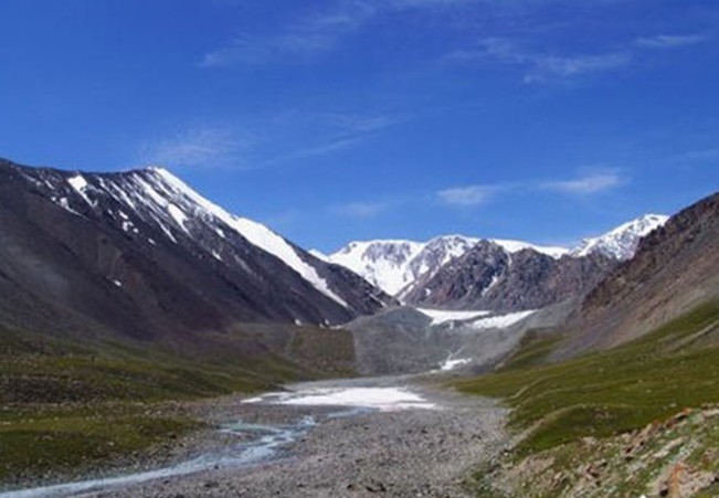 哈密喀爾里克冰川位于鹽池鄉(xiāng)政府南10公里處,海拔高度4888米,至今仍是一處尚無一人攀到頂峰的處女峰,終年積雪,分布著大小63條冰川,尤其是喀爾里克山的平頂冰川,面積約0.7平方公里,平頂山之側(cè)的高山湖泊,其景色不亞于臺(tái)灣的日月潭,素有固體天然水庫之稱,系美麗的伊吾河的發(fā)源地。