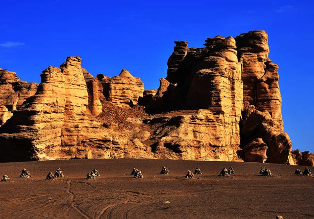 魔鬼城位于哈密市五堡鄉(xiāng)以南,距五堡鄉(xiāng)20Km,距哈密市約100Km,由于它神秘莫測,不熟悉地形的人若遇風(fēng)暴,有迷失方向的危險(xiǎn),哈密雅丹地貌東起煙墩外的駱駝峰,經(jīng)雅滿蘇鐵礦,大南湖煤礦,到五堡沙爾湖十三間房等長約400公里,寬約5-10公里,在哈密屬于特殊的地理環(huán)境,它是經(jīng)過漫長的風(fēng)蝕自然而形成的。在魔鬼城可以看到那些酷似城堡、殿堂、佛塔、碑、人物、禽獸形態(tài)各異的景觀、令人眼花繚亂的陡壁懸崖、以及混跡巖礫中五光十色的瑪瑙、隨處可見的硅化木、枝葉清新的植物化石,偶爾可獲得象恐龍蛋化石的小圓石頭,海生的魚類化石、鳥類化石,當(dāng)夜幕降臨時(shí)有時(shí)會聽到鬼哭狼嚎令人發(fā)指的嘶叫,因此才被人們稱之為“魔鬼城”。 版權(quán)所有山東聊城聊之旅國際旅行社有限公司,轉(zhuǎn)載必究!其實(shí)這里還真正存在著古城堡建筑、古民房遺址―艾斯克霞爾古城堡:離地面約六米的風(fēng)蝕臺上的長方形的土夯建筑有高約五米,前面有門有窗的居住地,這就是人類活動之地、是古絲路的驛站或是哈密王朝的西南前哨,據(jù)當(dāng)?shù)厝送茰y,此地西面的沙爾湖(由流沙通向羅布泊)干涸之前,這里也有村莊人家,當(dāng)水源游移(地殼變化)沙爾湖消失后,林木飛鳥在風(fēng)沙中,部分變?yōu)榛说鼐幼〉娜酥坏帽尘x鄉(xiāng),連先祖的遺骨也移走了、至今僅有遺址。哈密魔鬼城已是國家AAA級景區(qū)。