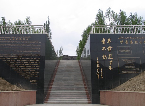 烈士陵園是伊吾人民為了緬懷在伊吾四十天保衛(wèi)戰(zhàn)中壯烈犧牲的革命烈士而建的。1950年春,在伊吾曾經(jīng)發(fā)生了震驚全國、震破敵膽的伊吾四十天保衛(wèi)戰(zhàn)。奉毛主席向新疆進(jìn)軍、屯墾戍邊的命令,我解放軍一營二連全體官兵在全國戰(zhàn)斗英雄胡青山副營長的率領(lǐng)下先后進(jìn)駐伊吾。1950年的伊吾偽縣長艾拜都拉與匪首烏斯曼、堯樂搏斯相勾結(jié),企圖以伊吾為據(jù)點(diǎn)發(fā)起大規(guī)模的武裝叛亂。