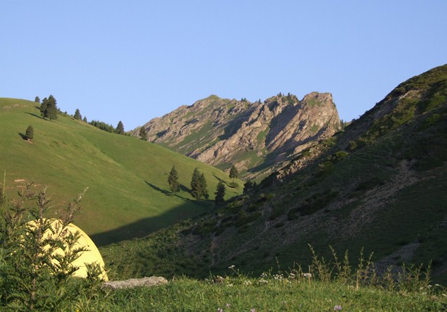 從烏魯木齊出發(fā),抵達(dá)大河沿后,租用越野車或卡車至五星牧場扎營。這里就是徒步的起點。
