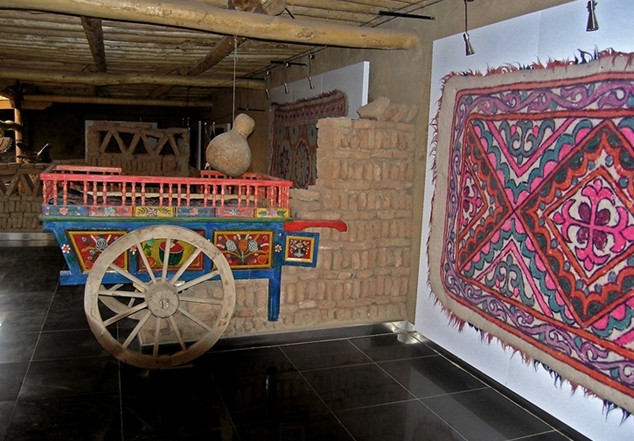 鄉(xiāng)巴藝棧是大漠土藝館歷時兩年建造而成的,可以說它是新疆維吾爾民俗藝術的精華薈萃之地,可讓游客在飽覽新疆民俗展示的同時,還可以親歷參與民間手工藝的制作流程。展品括土陶制品、桑皮紙、民族傳統服裝、鞋帽、艾德萊絲綢、土織機、土印花布、花氈、土機琢玉、帕拉斯織毯土機,木制品如木箱、搖床、旋木碗土機,金屬制品如銅壺、銅盤等等。這些民俗藝術品是土藝館歷時十載從民間收集來的,其中有的已消失,有的瀕臨滅絕,在民間已稀有且難以見到,鄉(xiāng)巴藝棧是大漠土藝館為挽救民族民間藝術遺產所作的一項工作,是維吾爾民俗的一個縮影。