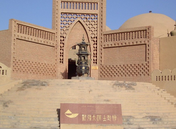 萬佛宮西側為四個穹頂建筑,版權所有山東聊城聊之旅國際旅行社有限公司,轉載必究!像串糖葫蘆似地連續(xù)在一起,為玉石、帽子、服裝、銅器等展室。西北角的木制品展室展示多種旋制、彩繪的木制品和土式機械。穿過鐘亭可參觀土陶展院,這里有老式以腳踏為動力的陶輪和一片很壯觀奇特的土饅頭(制作大陶的模具)。北側小院有兩座土陶窯,一座是從新疆土陶之鄉(xiāng)英吉沙縣移植的,一座是吐魯番本地馕坑窯(馕---新疆的烤面餅)游人在這里可參觀土陶制做的全過程,還可觀賞土陶器皿。經過一條往下的階梯,便進入一個半地下的、結構繁復的民居建筑,屬于典型的吐魯番式土拱院,庭院冬暖夏涼,面積四百余平方米,足可供數十人在這里舉行一次“麥西來甫”民間歌舞晚會。庭院里坐南朝北的三間套房布置成了維吾爾民居,中間為客廳、東西二間為臥室,樓上為織毯展室、土印花布展室、壓花氈展室和艾得來斯綢展室,樓后是新疆的民間繪畫展室。游客在此,可一飽眼福,盡情欣賞維吾爾族民間美術的精粹。以上十一個展室的展品,是新疆民間工藝美術的縮影,參觀了這些展室之后,便對維吾爾族豐富多彩的民間工藝美術,對西域大漠民族的習俗、歷史、文化、情操,有了一定的知曉。