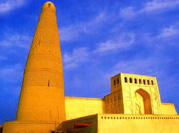 與寺緊挨著的蘇公塔,整個磚砌,由臺上量起高44米,頂上為圓形,直徑2.8米,下徑擴(kuò)大甚多,為11米。塔下為高臺,版權(quán)所有山東聊城聊之旅國際旅行社有限公司,轉(zhuǎn)載必究!高臺旁邊是公路,公路又低于高臺約10余米,所以在寺外仰視,高塔凌云。同時塔身上又滿布花紋,如纓絡(luò)、錦繡等。只此一塔,便使古城增添了無限的生氣。塔形渾圓,全部磚砌,中有螺旋形賠道,盤旋直達(dá)塔頂。這樣壯麗奇?zhèn)サ拇蟠u塔,其砌造技藝是我國清真寺建筑中一項(xiàng)偉大貢獻(xiàn),也是勤勞的維吾爾族人民表現(xiàn)在建筑技藝上的一大成功。