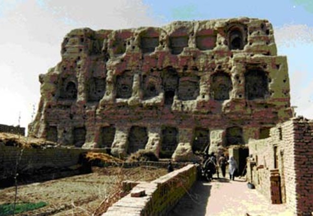 臺(tái)藏塔 位于吐魯番市以東約40公里,南距高昌故城約1公里。為高昌王國(guó)時(shí)期的佛教建筑。塔高20米,塔東面與北面均有佛教洞龕。西面塔壁中有洞,貫穿墻壁,作用不明,南壁已毀。由于距高昌故城較近,又是高昌王國(guó)佛教建筑,充分反映了高昌時(shí)期佛教的興盛。