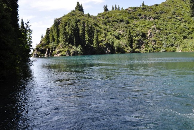 東小天池位于天池主湖東面500米,是天池主湖泄水而形成的,因傳說是小飛龍的巢穴,所以又稱飛龍?zhí)丁S謧髡f這里是西王母沐浴梳洗的地方,故又有“梳洗澗”、“浴仙盆”之稱。東小天池掩映在茂密的原始森林中,池邊灌木叢生,巨石羅列。池水墨綠幽暗,常起波瀾。東小天池人跡罕至,顯得特別陰森和神秘。它雖然不及西小天池大,但景觀特殊,又未經(jīng)任何修飾,意境不俗。