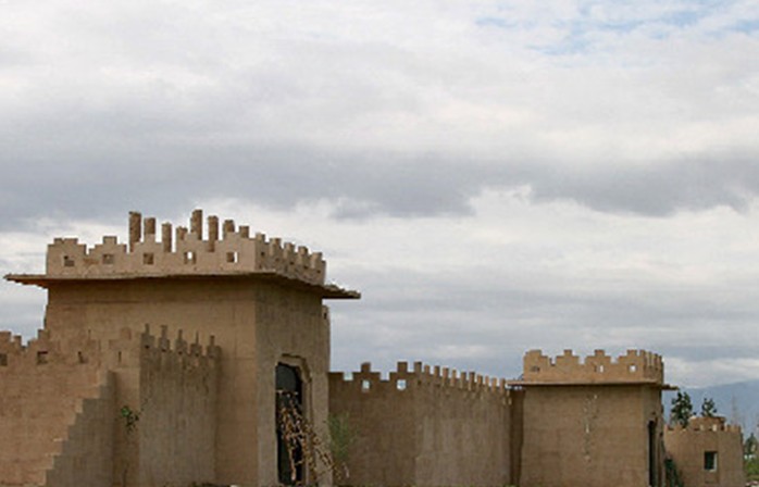 城門均在每邊的中央部分,城區(qū)分三部分:東北、西北、西南三個小城。該城的甕門,城樓,角樓,馬面等都格外宏大,城垣中部還有對外瞭望的孔道,從其浩大的工程建筑及軍事設施來看,它顯然是具有重大軍事意義的設置,軍級建制(靜塞軍)的屯兵駐地。古城距今已逾千年。有人認為,它就是唐代的輪臺城,城內(nèi)地面上曾發(fā)現(xiàn)遼,元時期的文化遺物,如陶罐,陶盆,蓮紋方磚,古錢幣及玉器等,現(xiàn)列為全國重點文物保護單位。