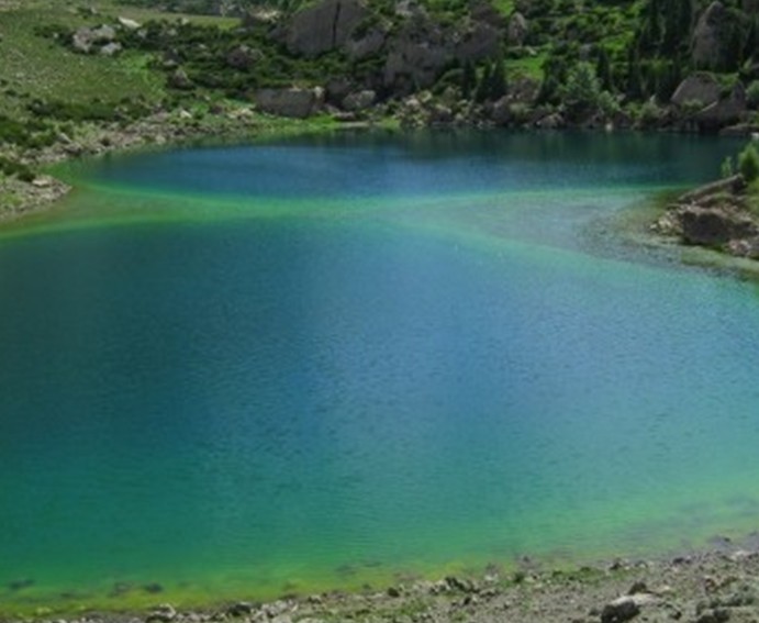 從庫(kù)車出發(fā)大約120公里的天山深處,有兩個(gè)高山湖泊。他們被稱作大龍池、小龍池,景色十分秀麗迷人。海拔2390米,緊鄰217國(guó)道。大龍池水面積約2平方公里,海拔3700米,四周環(huán)山,由天山雪水融匯而成,水域?qū)掗煟宄阂姷祝K年白雪皚皚,雪線以上生長(zhǎng)著名貴中藥材--雪蓮。山下云杉翠柏,綠草如茵,牛羊成群,牧民的氈房點(diǎn)綴其間,偶爾還可見雪雞、黃羊和雪豹。