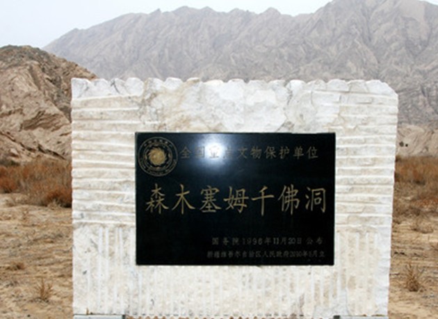 森木塞姆千佛洞屬全國重點文物保護單位,位于中國西北部新疆維吾爾自治區(qū)的庫車縣,是一處晉代至宋代(公元4~10世紀)的佛教石窟群遺址。森木塞姆千佛洞主要分布于卻勒塔格山口直徑約800米范圍內的山崖上。石窟大部分已經遭到破壞,目前保存較為完整的有57座。洞窟分布在馬蹄形的山谷里,按地理位置可分為東、南、西、北、中五個區(qū),現(xiàn)有編號洞窟57個。