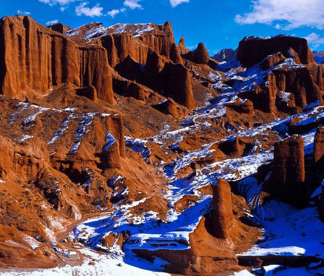 溫宿神秘大峽谷是2600萬年前內(nèi)陸湖泊沉積的地層。由距今一億多年前的中生代的白堊紀,經(jīng)過億萬年的洪水、雨水沖刷和勁風(fēng)吹蝕共同作用而形成的。全景為巖鹽喀斯特地貌和峽谷雅丹地貌為代表的地質(zhì)遺跡和地質(zhì)景觀。目前大峽谷開發(fā)的路段溝長約10幾公里,南北向,寬處約200至300百米,狹窄處僅可一人通過。版權(quán)所有山東聊城聊之旅國際旅行社有限公司,轉(zhuǎn)載必究!走進大峽谷,峽谷兩側(cè)因風(fēng)吹日蝕,雨水沖刷,形成了許多神奇肅穆令人嘆為觀止的傳神奇景,如:英雄谷、幽情谷、雙塔谷、紫瀾山、胡楊雙雄、萬僧朝圣、千年古堡、千山雄風(fēng)、太空來客、驛路城池、雙塔爭鋒、情俑、千古壁畫、千屋萬塔、一線云天、星河飛瀑、三心石、二意柱、巨輪飛渡、赤柱坡、雄鞭口、望心門、赤砂墩等氣勢壯觀的100多處難于用語言文字表達清晰的山體造型。英雄谷,男人谷,情人谷中的—生命之本和生命之源是大峽谷的鎮(zhèn)谷之寶。