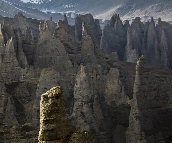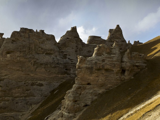 天山石林又稱(chēng)奎克烏蘇石林,因位于天山山脈西段、那拉提山北麓的奎克烏蘇達(dá)坂之下而得名,長(zhǎng)9000米、寬約5000米,相對(duì)高度30米,大自然的鬼斧神工,把石林雕刻得奇形怪態(tài),千姿百態(tài)。從巴音布魯克草原向西南行走100公里,登上科克烏蘇達(dá)坂頂端,放眼望去,在雪峰環(huán)抱中,好象有一片原始森林散落在一條深谷兩面的山坡上,走近一看,原來(lái)不是松柏,而是一片亭亭玉立的“石林”。經(jīng)過(guò)大自然幾百萬(wàn)年的洗禮,這沙巖石林被雕塑的千姿百態(tài)、光怪陸離。有的宛如座座古堡,有的仿佛行人走獸,栩栩如生;有的象刀槍劍戟,直插藍(lán)天,其間還布滿(mǎn)了大窟小洞,通幽曲徑。石林地處天山深處,交通不便,反倒成了天然野生動(dòng)植物的保護(hù)圈。