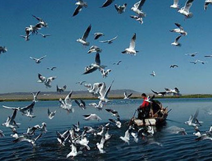 又名“布倫托海”,“福海”。位于準(zhǔn)噶爾盆地北部,福海縣城西北。“布倫托”,突厥語意為“灌木叢生”。這是新疆僅次于博斯騰湖的第二大漁業(yè)基地。由面積 165平方公里的吉力湖(小海子)和面積 730平方公里的烏倫古湖兩個(gè)水域組成。發(fā)源于阿爾泰山的烏倫古河流入其中,為該湖主要水源。湖水平均深度為八米,北岸斷崖,與額爾齊斯河僅距2.1公里,湖盆是由斷層陷落而形成的。烏倫古湖素以“戈壁大海”和鮮美“福海魚”而著稱。從克拉瑪依市出發(fā),沿公路去阿勒泰市,烏倫古湖是必經(jīng)之地。湖區(qū)水質(zhì)肥沃,浮游生物豐富,有浮游植物75種,浮游動(dòng)物10多種,水生維管束植物6種,底棲生物亦多,大、小湖均屬于營養(yǎng)型湖泊。主要經(jīng)濟(jì)魚類有:貝加爾雅羅魚、河鱸、斜齒鳊、東方真鳊、圓腹雅羅魚、銀鯽、丁卡等,以前4種產(chǎn)量居多。平均年產(chǎn)量約3000噸,最多年4500噸,占新疆魚產(chǎn)總量1/3以上。由于湖面水位下降,湖濱的沼澤面積逐漸減少,蘆葦產(chǎn)量和質(zhì)量均下降;1972年沼澤面積已減少22平方公里,蘆葦高度由2~4米變?yōu)楝F(xiàn)在的0.5~1米。同時(shí),沙堤、沙灘面積卻日漸增加。1960年以前大湖未見沙堤,1972年沙堤斷續(xù)露出水面。1980年沙堤已連續(xù),寬約400米,最高處露出水面2米。 大湖東部駱駝脖子出口處變窄變淺,正向潟湖方向發(fā)展。從環(huán)境條件看,烏倫古湖可從近20多年的惡性循環(huán)轉(zhuǎn)向今后的良性循環(huán),主要措施是從額爾齊斯河增加引水量,并從烏倫古河揚(yáng)水灌溉湖周草地及湖西南地區(qū)。這樣不僅湖水位可回復(fù),湖水加速循環(huán)后亦可淡化。從額爾齊斯河引水的規(guī)劃工作正在進(jìn)行。