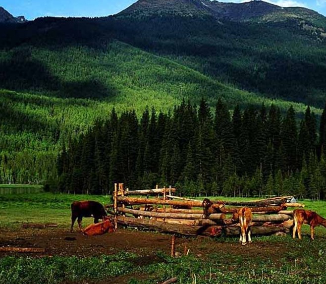 白哈巴景區(qū)面積為1009平方公里。目前,由國家林業(yè)局批準(zhǔn)為國家級森林公園,森林覆蓋率為70%,樹種有新疆針葉松、落葉松、云杉、冷杉、山楊、白樺等。植被有灌叢草甸,高山植被、石山植被。陽坡和山間盆地多水草豐美、山花爛熳,是我國寒溫帶草原區(qū)植物種類最多的地區(qū)。本區(qū)真菌種類也很豐富,據(jù)初步調(diào)查有真菌99種,其中食用菌50種,有冬蟲夏草、平蓋靈芝、花杉靈芝等經(jīng)濟價值很高的種類。白哈巴森林公園周圍特有的生態(tài)環(huán)境和原始狀態(tài),為野生動物提供了良好的棲息繁衍場所。據(jù)初步統(tǒng)計,有獸類39種,兩棲爬行類4種,鳥類177種,其中27種為國家級保護動物,屬于一類保護動物的有紫貂、貂熊、雪豹、北山羊、黑鸛等多種。白哈巴村內(nèi)居住的圖瓦人屬蒙古族支系,圖瓦人多少世紀(jì)以來繁衍生息在阿勒泰的白哈巴、禾木河、喀納斯湖的肥沃草原上,世世代代以放牧為生。