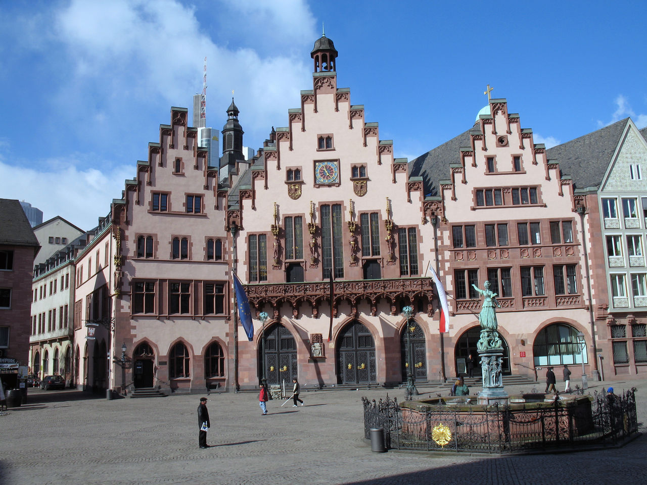 法蘭克人的基督教主教會(huì)議所在地最初位于緬因河唯一的渡口,而法蘭克福這一城市的名字也正因此得名——它源自于拉丁文“Franconofurd”,意思是“法蘭克人的渡口”。便利的交通條件使法蘭克福很快發(fā)展成為一個(gè)重要城市。