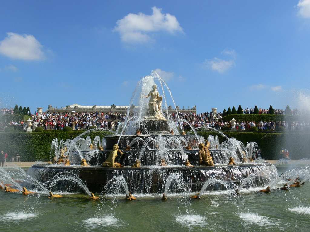 花園:現(xiàn)存面積為100公頃,以海神噴泉為中心,主樓北部有拉冬娜噴泉,主樓南部有桔園和溫室。花園內(nèi)有1400個噴泉,以及一條長1.6公里的十字形人工大運(yùn)河。路易十四時期曾在運(yùn)河上安排帆船進(jìn)行海戰(zhàn)表演,或布置貢多拉和船夫,模仿威尼斯運(yùn)河風(fēng)光。花園內(nèi)還有森林、花徑、溫室、柱廊、神廟、村莊、動物園和眾多散布的大理石雕像。