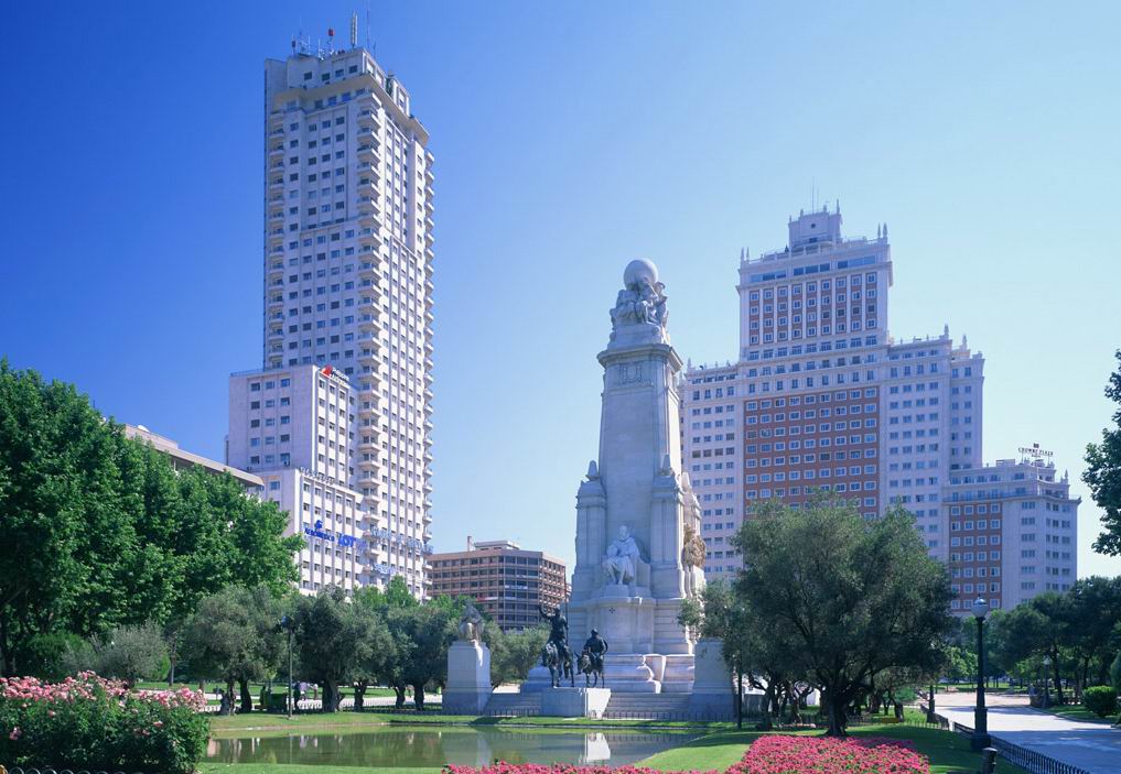 市內(nèi)現(xiàn)代化的高樓大廈與風(fēng)格迥異的古建筑摩肩并立、相映生輝。樹林、草坪和各種造型別致的噴泉和雕有古代小亞細(xì)亞人尊崇的自然女神尼貝萊塑像噴泉最吸人入勝。宏偉的阿爾卡拉門坐落在阿爾卡拉街頭的獨(dú)立廣場(chǎng)上,共有5道拱門,是馬德里著名的古建筑之一。財(cái)政部、教育部和西班牙的主要銀行坐落在阿爾卡拉大街兩側(cè),建于1752年的王家美術(shù)學(xué)院收藏著牟利羅和戈雅等西班牙美術(shù)大師的名作。巍峨的塞萬(wàn)提斯紀(jì)念碑聳立在西班牙廣場(chǎng)上,碑前有堂吉訶德和桑科•潘扎的塑像,巨大的碑身倒映在前面的水池之中,碑兩側(cè)是蔥郁的樹木;有“馬德里塔”之稱的西班牙摩天大廈位于廣場(chǎng)一側(cè)。