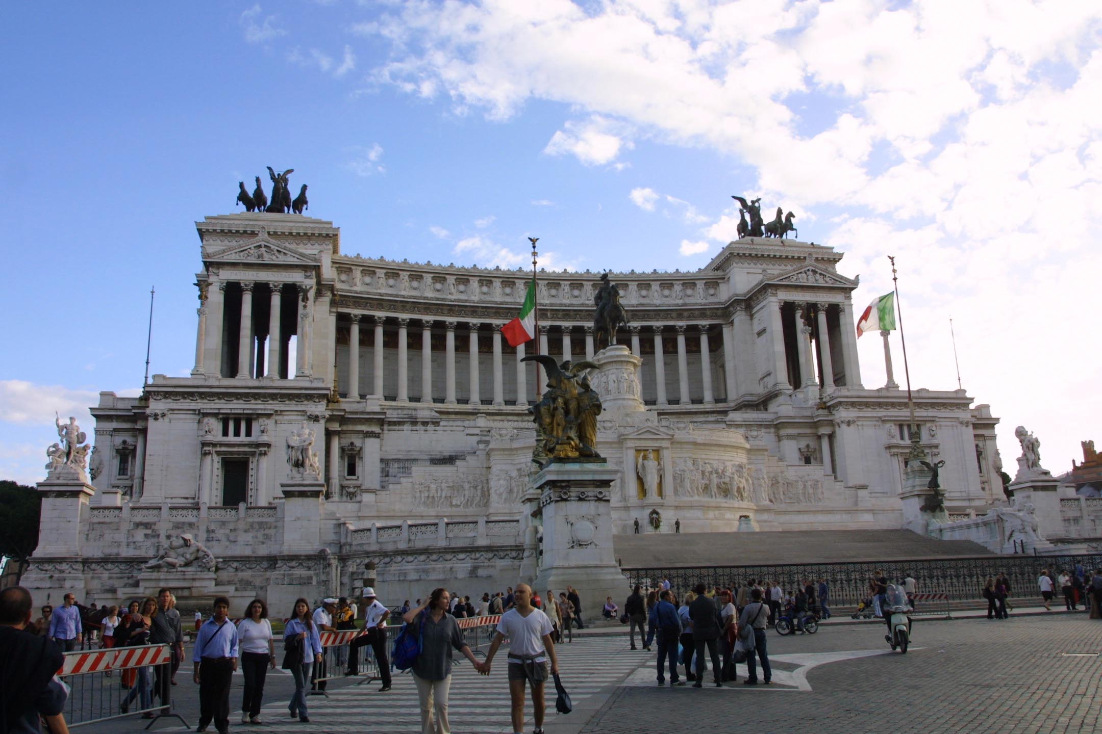 羅馬集中了意大利獨(dú)立統(tǒng)一運(yùn)動(dòng)的大部分紀(jì)念物。在威尼斯廣場(chǎng)右邊的紀(jì)念碑中央高臺(tái)上,矗立著艾馬努埃爾二世騎馬的鍍金大銅像。艾馬努埃爾是曾經(jīng)領(lǐng)導(dǎo)人民趕走外國(guó)占領(lǐng)者、統(tǒng)一意大利的國(guó)王。這座紀(jì)念碑被意大利人稱為“祖國(guó)祭壇”。在臺(tái)伯河西岸的佳尼科洛嶺上,聳立著率軍解放羅馬的意大利民族英雄加里波第的紀(jì)念碑。