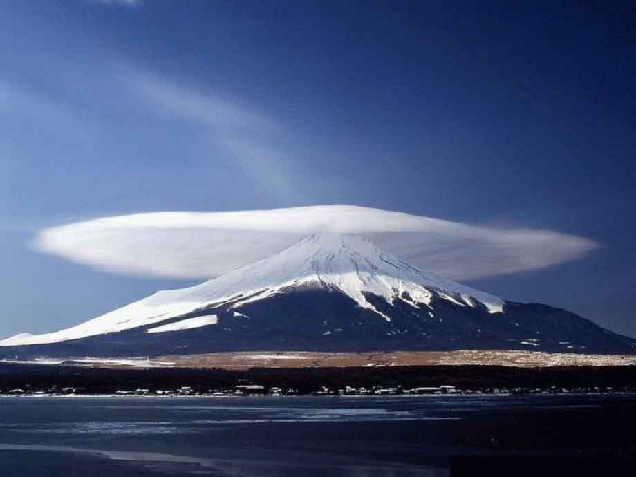 富士山位于山梨縣和靜岡縣境內(nèi),是日本最高山,是日本的象征和日本人的精神支柱,是富士箱根伊豆國(guó)立公園內(nèi)最吸引人的景致。它是一座高約3,776米的休眠火山,以勻稱(chēng)、恬靜的外形著稱(chēng)于世。冬天覆蓋著寂靜的白雪,每年6月末之前富士山第五級(jí)即2,305米以上的部分均覆蓋著皚皚白雪;夏天則一派生機(jī)盎然,7月1日是開(kāi)始登山的日子,夏季里第一批登山者可以觀賞到高山薔薇和其它高山植物。富士山的夏天十分短暫,8月末的傳統(tǒng)節(jié)日――吉田篝火節(jié)宣告登山季節(jié)的結(jié)束。富士山南坡和北坡的氣候變化截然不同。山頂與山腳的溫差達(dá)20℃,年均溫度為零下6.7℃。山頂?shù)臍鈮簝H為山腳的三分之二。