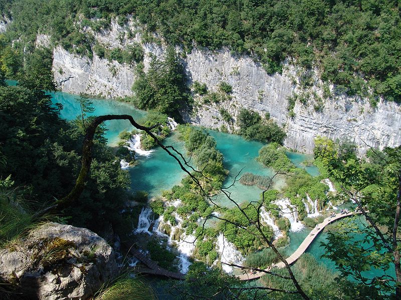 克羅地亞的國(guó)家公園。普里特維采天然湖群,大小共有16個(gè),故又稱十六湖,是一處擁有多種珍禽異獸和山水風(fēng)光優(yōu)美的風(fēng)景區(qū)。1949年建立國(guó)家公園,總占地面積19462公頃。其中森林又占70%以上,即15715公頃。公園地形按高低可分兩組,上一組坐落在白云石亞地層的山上,四周均環(huán)繞著茂密的森林。下一組處于兩條山脈間的峽谷中,其內(nèi)16個(gè)互相連接的山地湖泊,總長(zhǎng)10千米,面積為217公頃。公園海拔502~636米 。各湖高差懸殊,從第一湖至第十六湖高差達(dá)135米,諸湖之間形成瀑布群,其中最大瀑布落差達(dá)76米,并呈梯狀一節(jié)節(jié)飛流而下。湖泊兩岸斷壁懸垂,湖與湖之間又有蜿蜒的木橋相連,既便觀賞,又提供了游覽捷徑。