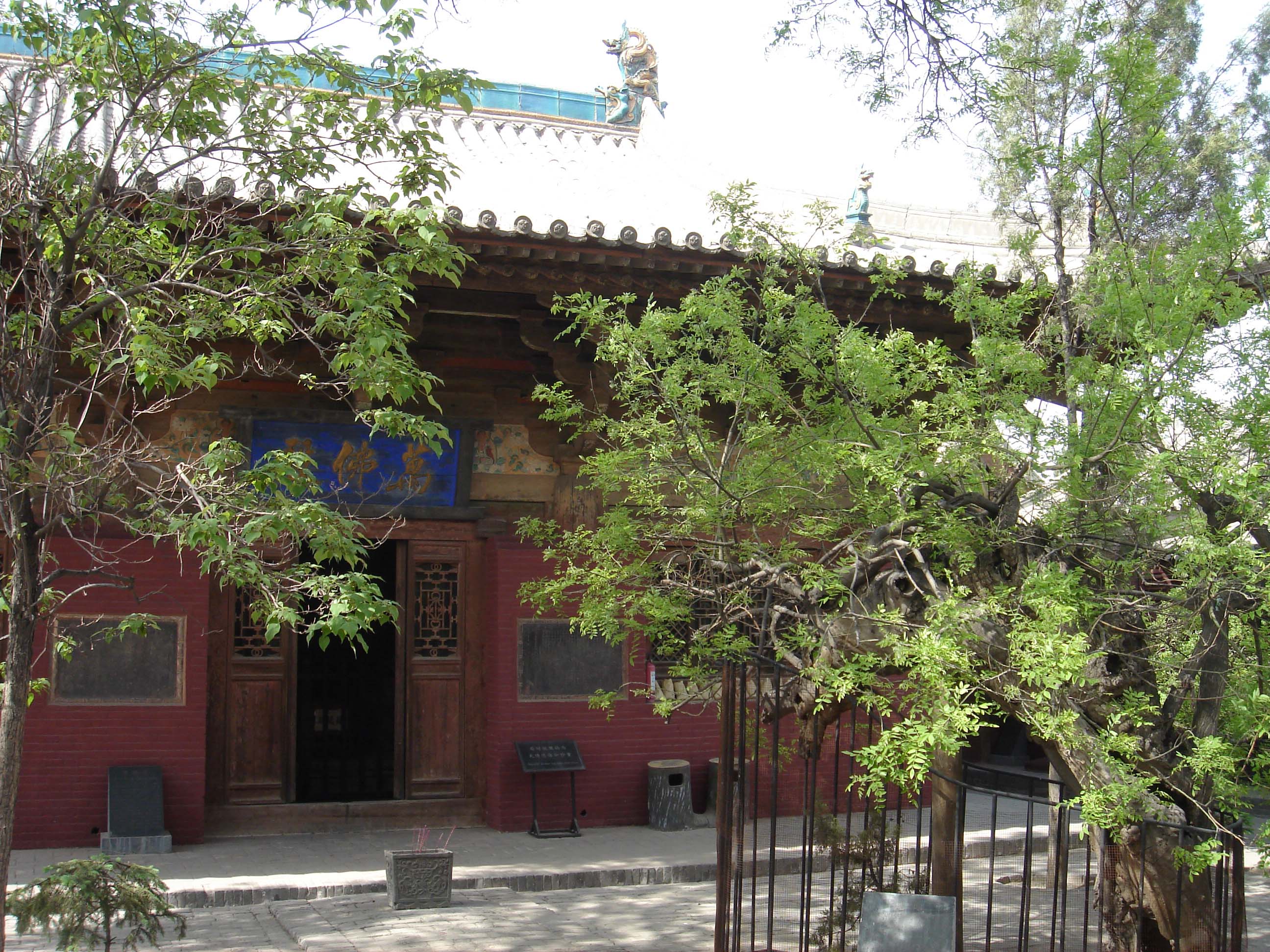 從寺內(nèi)碑文中可知,元、明兩代利用隙地,前創(chuàng)山門天王殿、鐘鼓二樓,后建三佛樓和東西廊房、觀音,地藏二殿。清代雍正、乾隆年間,又重新修葺東西兩廊,嘉慶元年至二十年,又創(chuàng)建舞榭于山門外(已毀),并建經(jīng)堂于佛閣兩翼,添建廂房六間。嘉慶二十年(公元1815年)重修時(shí),對(duì)萬佛殿再度修葺。