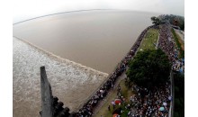 錢江潮,又稱海寧潮。以“一線橫江”被譽(yù)為“天下奇觀”。海寧觀潮之風(fēng)漢時(shí)即已蔚然,唐宋時(shí)更盛。北宋詞人潘閬所唱“長(zhǎng)憶觀潮,滿郭人爭(zhēng)江上望。來疑滄海盡成空,成面鼓聲中。弄潮兒向濤頭立,手把紅旗旗不濕。別來幾向夢(mèng)中看,夢(mèng)覺尚心寒。”便是當(dāng)年“弄潮”與“觀潮”的真實(shí)寫照。