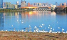 天鵝湖國家城市濕地公園,位于三門峽市東西城區(qū)之間的生態(tài)區(qū)內(nèi),現(xiàn)有面積8850畝,其中陸地6150畝,水面、灘涂2700畝,核心景區(qū)包括雙龍湖白天鵝觀賞區(qū)、陜州古城和沿黃生態(tài)林帶三部分,是一處融生態(tài)、文化和人文地理于一體的自然山水景區(qū)。