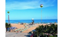 大角灣風(fēng)景名勝區(qū)位于廣東陽江市海陵島西南端,三面群峰拱護,面向浩瀚南海,沙灘長2.5公里,寬100米,因狀似牛角,故名“大角灣”。這里地處南亞熱帶,全年日照時間長,年平均氣溫22.8℃,水溫23.5℃,降雨量1816毫米,年晴天數(shù)310天,四季氣侯宜人,素以陽光燦爛明媚,沙質(zhì)均勻松軟,海水清澈純凈,空氣清新純潔而著稱,各類質(zhì)素均達國際一類(級)標(biāo)準(zhǔn),又因沙灘寬闊平坦。