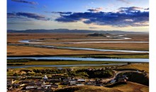 黃河第一灣黃河第一彎地勢平坦,水流舒緩,小島、岸邊紅柳成林。索克藏寺院修筑于黃河第一彎山凹臨河處,白塔古寺,帳篷炊煙相伴黃河,更顯自然悠遠(yuǎn)博大,這里有四川省最大的草原,面積近3萬平方公里,由草甸草原和沼澤組成。,第一灣位于若爾蓋縣唐克鄉(xiāng),距縣城61公里。地處草原腹心地帶,白河于此匯入黃河,形成浩大氣勢,草原地勢平坦,一望無際,人煙稀少。紅軍二萬五千里長征曾多次通過這里