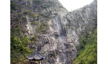月牙山是由七星山的玉衡、開陽、瑤光三座山峰組成,因山腰有一巖石,遠望酷似一彎新月,故而得名。又因山中有龍隱洞,龍隱巖,也叫龍隱山。在山北的山腰上,有一劍柄石,它屹然獨立,筆直峭拔,高達數(shù)丈,形似劍柄。沿山麓小道西南而行,過玉兔巖,即可到伴月亭。在這里看花橋倒映于清澈的小東江中,極富詩意。再往前行數(shù)十米是月牙巖,它前臨小東江,三面是懸崖峭壁,瓊花盛開,石乳倒垂。