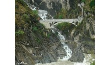 虎跳峽,中國(guó)最深的峽谷之一。在云南省玉龍納西族自治縣(原麗江納西族自治縣)龍?bào)脆l(xiāng)東北。峽谷長(zhǎng)16公里,南岸玉龍雪山主峰海拔5,596米,北岸中甸雪山海拔5,396米,中間江流寬僅30~60公尺。虎跳峽的上峽口海拔1,800公尺,下峽口海拔1,630公尺,兩岸山嶺和江面相差2,500~3,000公尺,谷坡陡峭,蔚為壯觀。