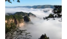 雙峰嶂,位于是塘蓬鎮(zhèn)西北,海拔382米,是湛江市第一高峰。雙峰東西并立,相距不過數(shù)十米,峰廓渾賀,宛若美人又乳,故名。雙峰嶂東令仙人嶂 ,西靠婆髻嶂,遠看酷似一尊巨大的睡美人像:頭在婆髻嶂,胸在雙峰嶂,臀在仙人嶂。登臨雙峰 ,極目遠眺,十萬大山余脈蒼蒼莽莽,鶴地煙波渺渺茫茫,長青水共天一色,九洲江如飄玉帶。如畫仙境,盡收眼底。